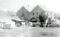 Wreaks Mill, pictured with Woods employees and three horse-drawn carts heavily laden with flour, awaiting departure - circa 1904.
