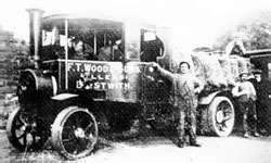 Woods had the first steam wagons in West Yorkshire - this photograph of a Woods steam wagon and employees was taken circa 1920.