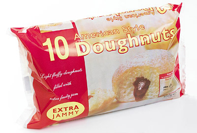 Each light fluffy doughnut is double filled with fruity jam and real dairy cream. This product is sold in over 10,000 stores throughout Europe.
