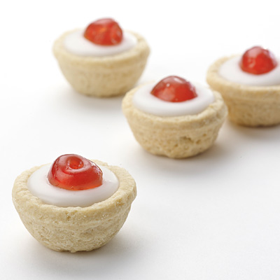Beautifully short pastry with a deep filling of almond flavoured sponge and seedless raspberry jam. Our bakewell is then topped with a white fondant icing and a pretty hand-crafted cherry decoration. Available as a mini tart at 25g (see below).