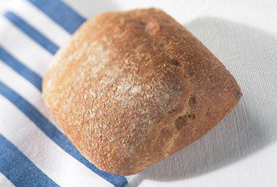 Stonebaked roll made with French variety wheat with added wholemeal flour. A long fermented sponge dough which is firstly bulk fermented. Once shaped and cut is then allowed to rise slowly before being baked on the stone of the oven.
